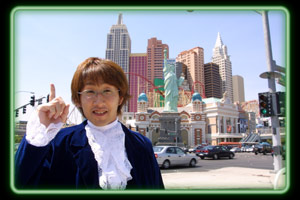 「やー、待ってたよ。ここはニューヨーク・ニューヨークっていうホテル。建物の周囲をジェットコースターが走ってるんだよ。どうだい、ラスベガスって、すごいだろう」